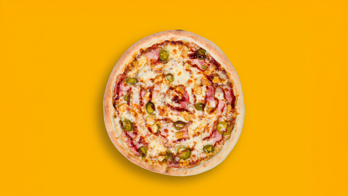barbecue omáčka, mozzarella, anglická slanina, kuřecí maso, jalapeños (1,3,7)