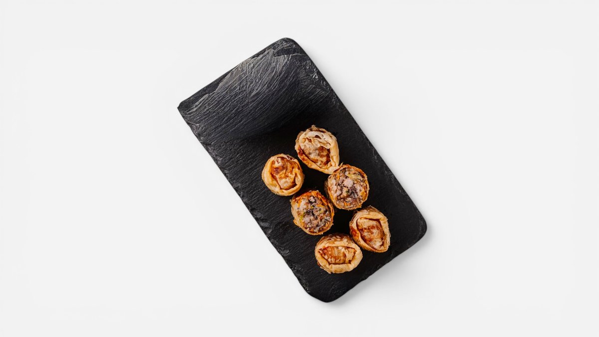 Pork & shrimps, egg, glass noodles, carrot, kohlrabi, wood ear, fish sauce Vepřové & krevety, vejce, skleněné nudle, mrkev, kedlubna, jidášovo ucho, rybí omáčka