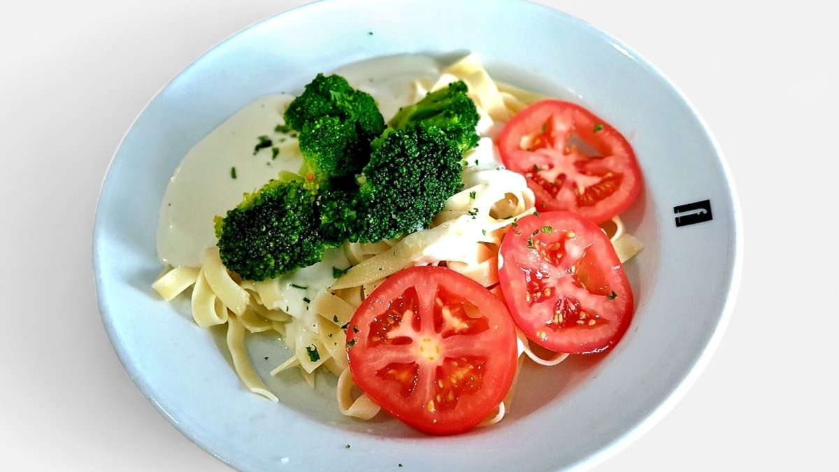 250g Široké nudle se sýrovou omáčkou a máslovou brokolicí