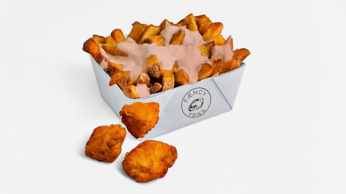 Rozpékaný čedar s velkou porcí FÆNCY FRIES. Jedna FÆNCY omáčka dle výběru v ceně produktu.