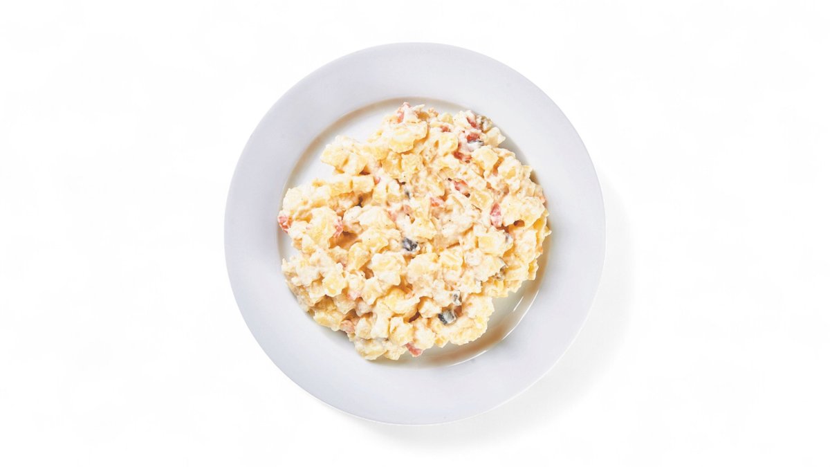 Složení: smažený obalený vepřový řízek 100g (vepřové maso hrubá váha 150g), bramborový salát 250 g