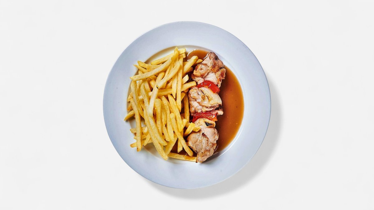 Kuřecí špíz, hranolky