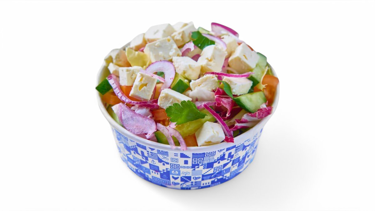 Lehký řecký salát s chutným sýrem fetas, variace omáček.