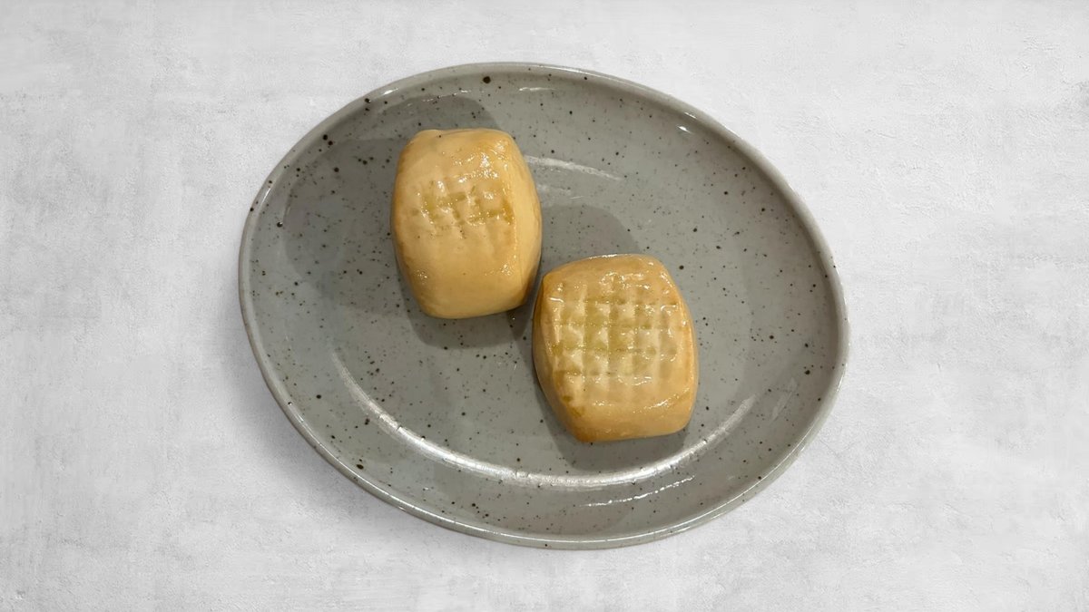 dim sum knedlíčky s krevetovou náplní podávané se speciální sojovou omáčkou, posypané sezamem a křupavou cibulkou A2 dim sum dumplings with shrimps filling served with special soja sauce, sesame and fried onions A2