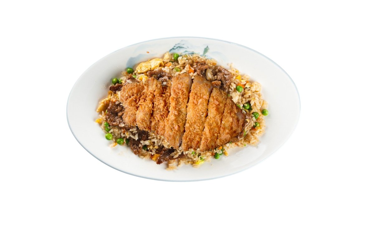 restovaná rýže s vajíčkem, zeleninou a kuřecím masem.A3 fried rice with egg, vegetables and chicken meat A3