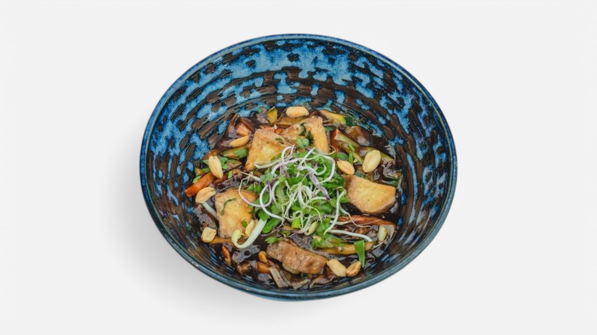 rýžové nudle s restovaným masem/tofu, čestvým salátem,zeleninou, bylinkami posypané arašídy a křupavou cibulkou podávané s vietnamskou rybí omáčkou (tofu se sojovou zálivkou) A11,A6,A4,A5 rice noodles with meat/tofu fresh salad and vegetable, herbs, crushed peanuts, fried onions served with vietnamese fish sauce (for tofu soy sauce) A11,A6,A4,A5