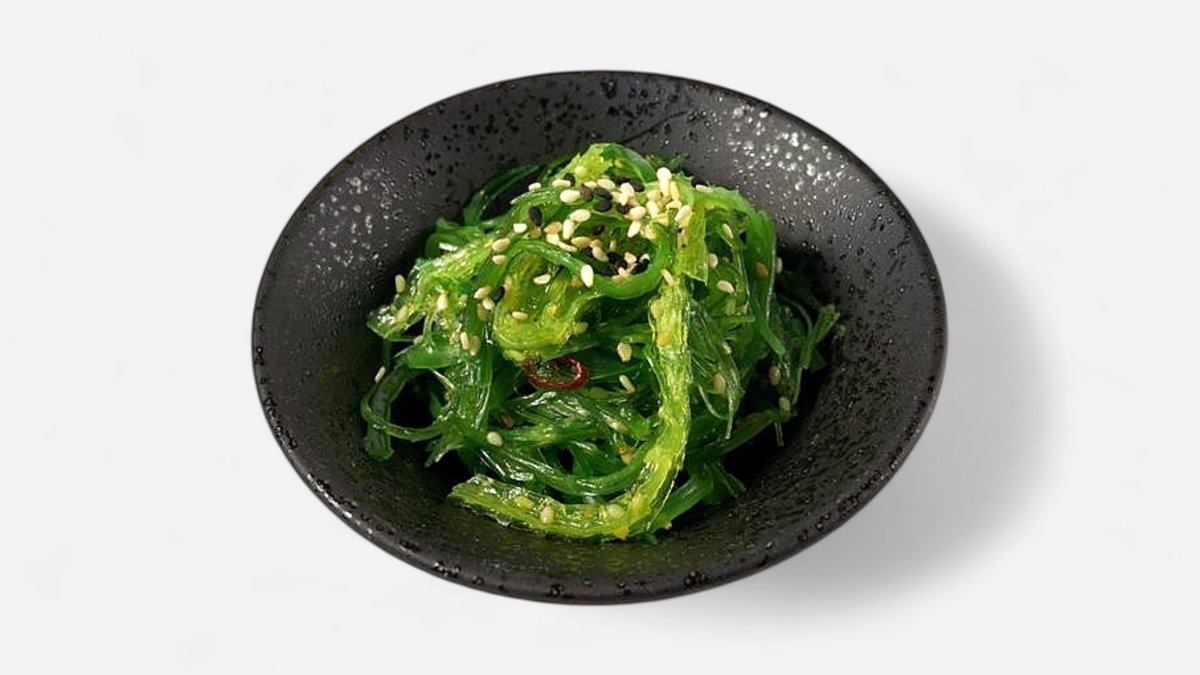 Japonský salát z mořských řas s nasládlou chutí posypané sezamem A11 Japanese seaweed salad topped with sesame A11