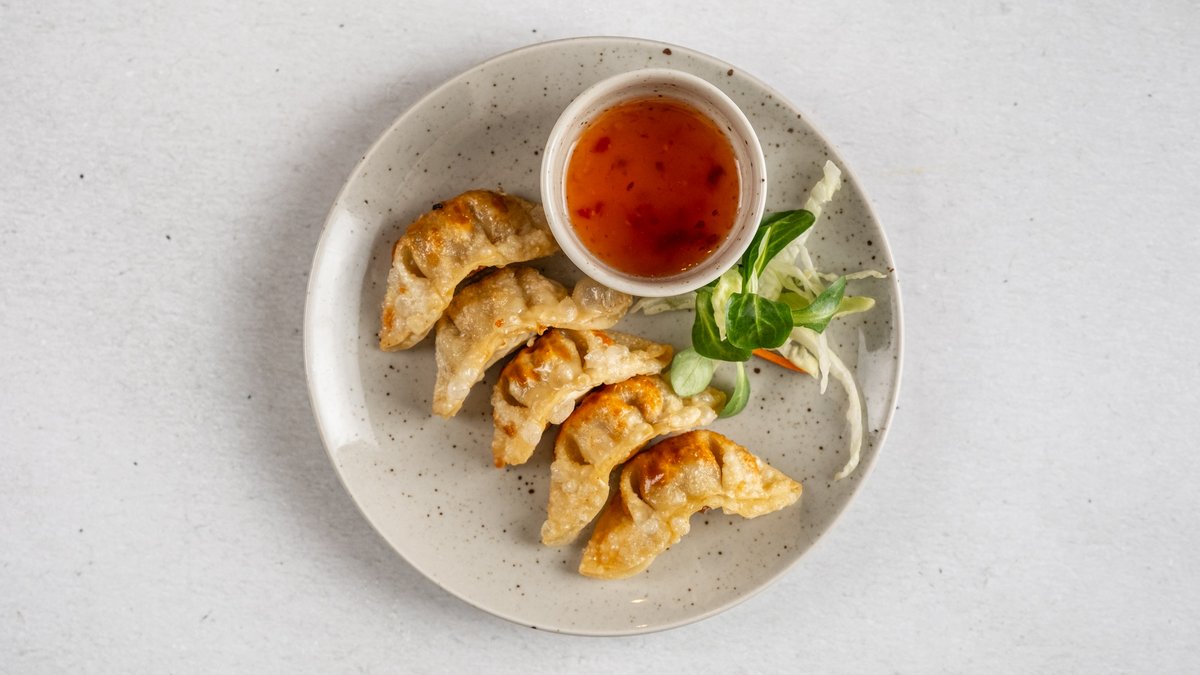 smažené korejské gyoza knedličky podávané se sladkokyselou omáčkou A1 A7 fried Korean gyoza dumplings served with sweet and sour sauce A7,A1