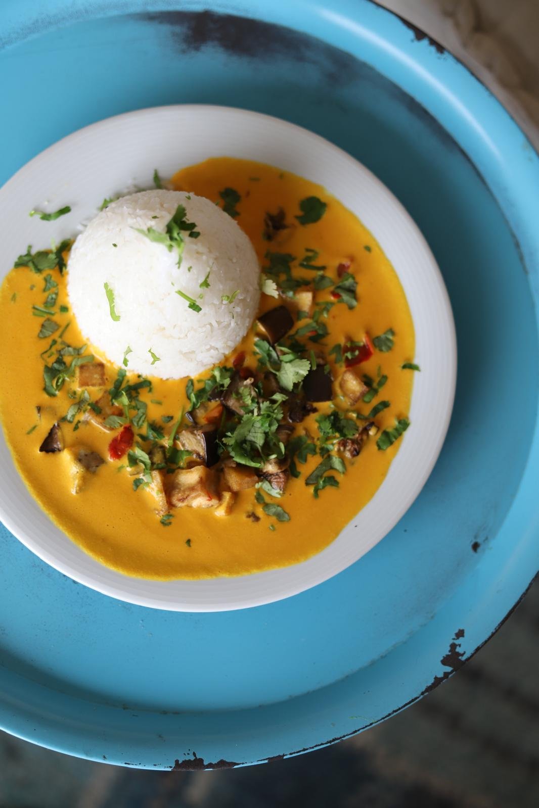 Lilkové kari s arašídy, koriandrem,tofu a jasmínovou rýží (5,6)