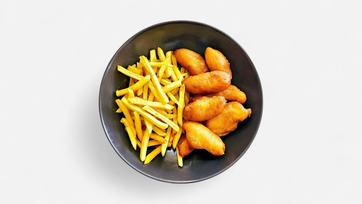 M12. Smažené kuřecí kousky s hranolkami
