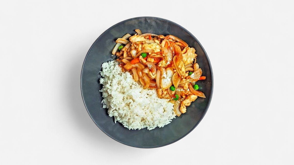 M38.teriyaki s kuřecím řízkem a smažením nudlemi