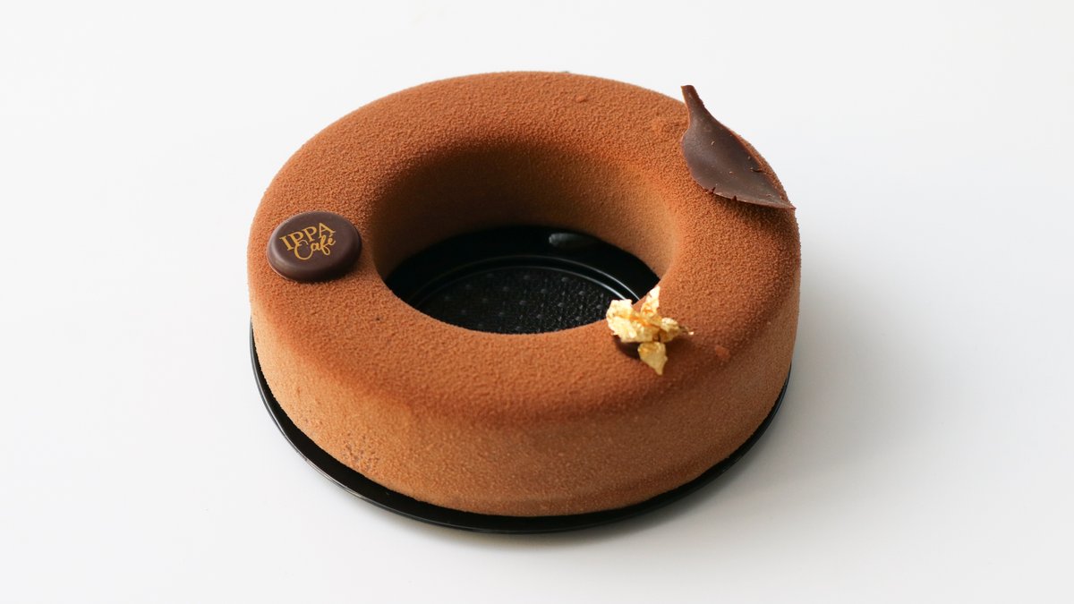 bezlepkový korpus, čokoládová mousse s rumem, hořká čokoláda, praliné, smetanový karamel