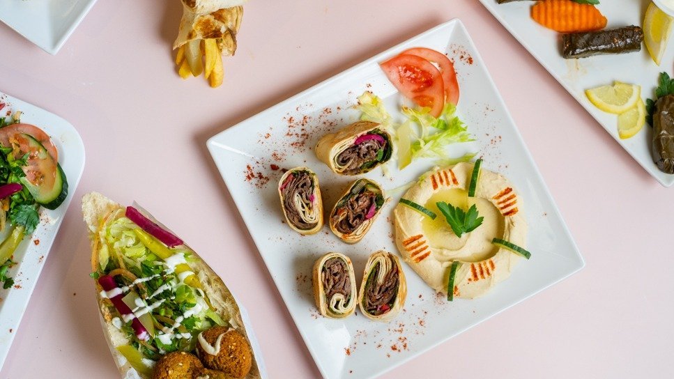 5ks falafelu, salát, omáčka, sý,r turecký chléb