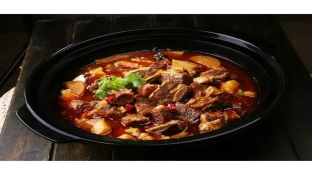 polévka z žeber, trhané hovězí maso, skleněné nudle, vejce, pórek, chilli omáčka, podáváno s miskou bílé rýže