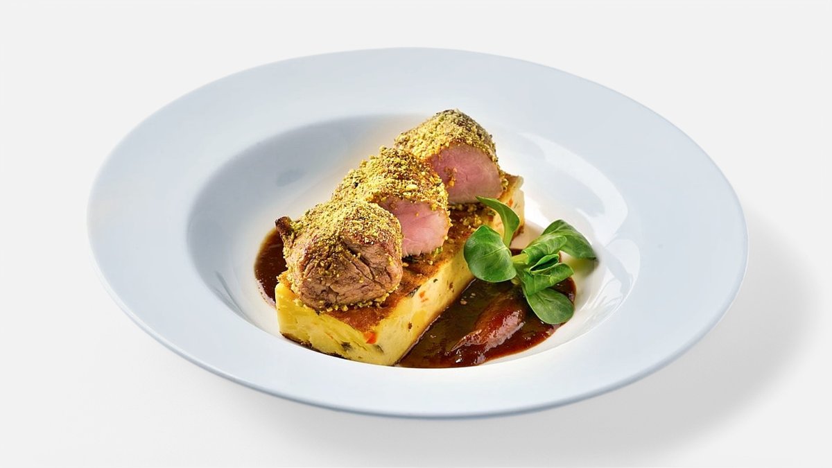 Vepřová roláda s medvědím česnekem, bramborová kaše s pažitkou 150 g |1,3,7,9|