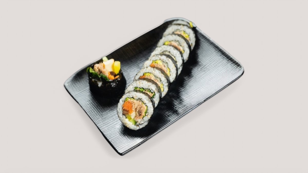 dried seaweed wrapped roll with mayo tuna, lettuce, yellow radish, burdock, carrot, spinach and egg