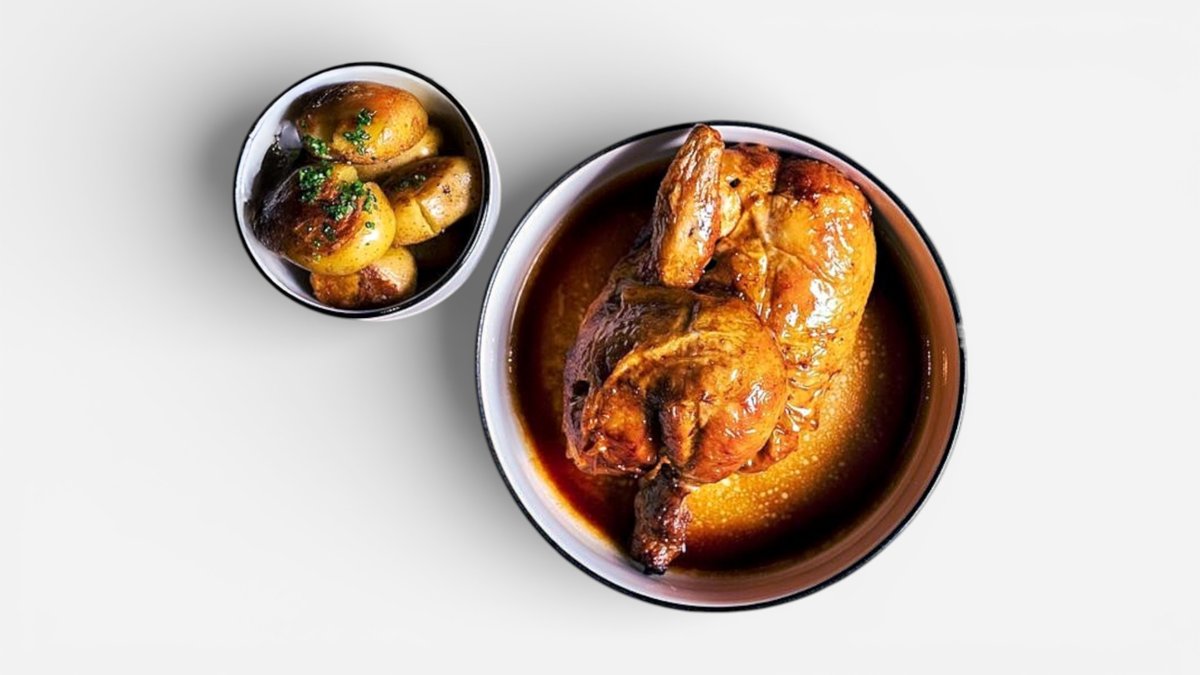 Poctivý kuřecí vývar, jehož základem jsou kosti z kuřat grilovaných v rotisserii ochucených naším signature kořením.