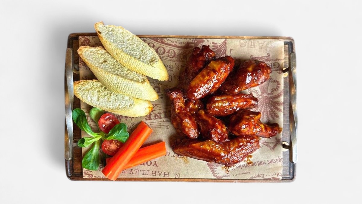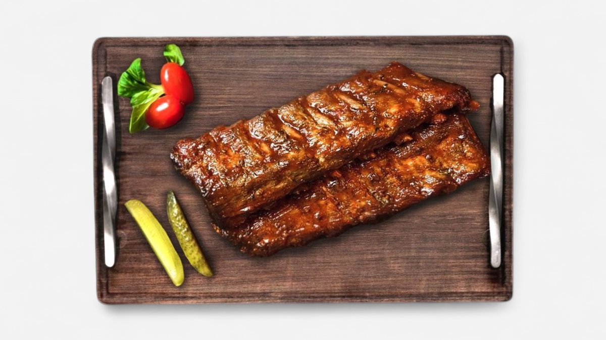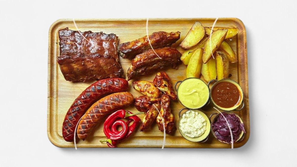 1,5 kg - (vepřová žebra, vepřová masitá žebra, klobásky, křídla, americký brambor, červené kyselé zelí)