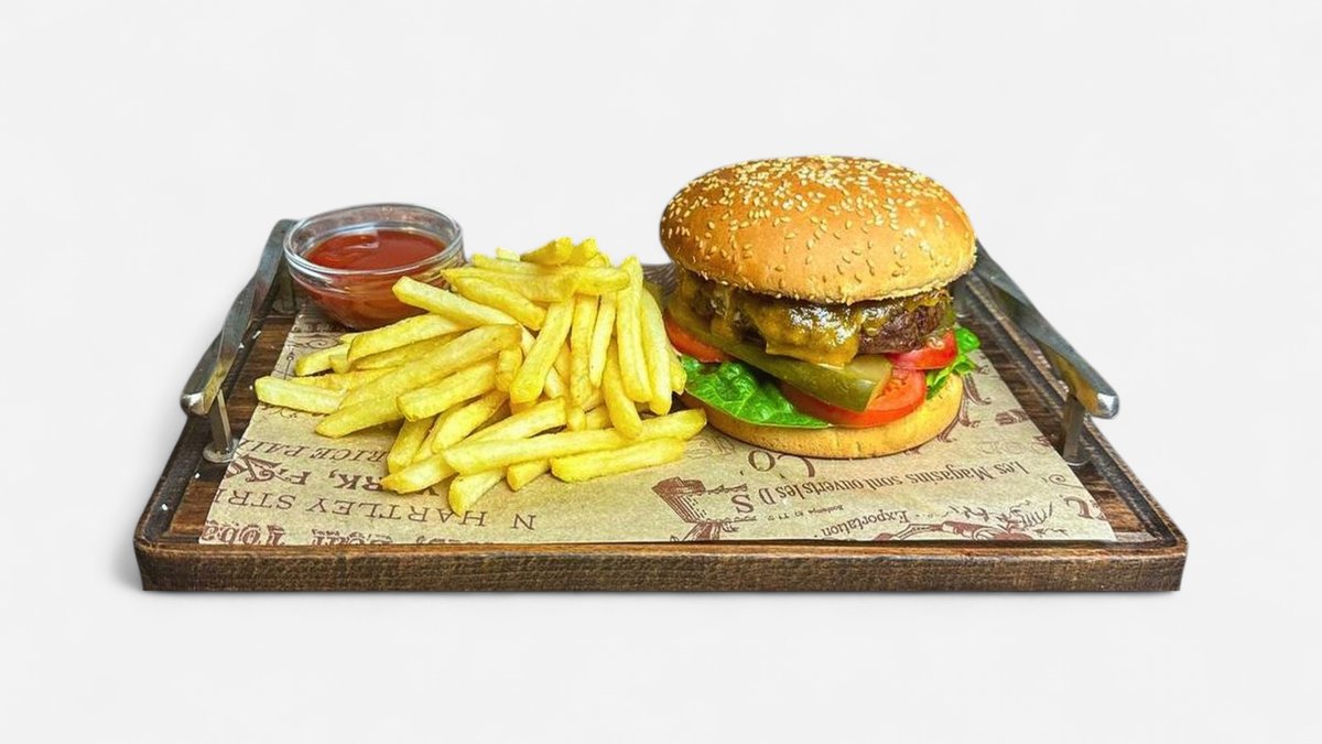 300g - ( hermelín a eidam) s hranolkami a tatarskou omáčkou