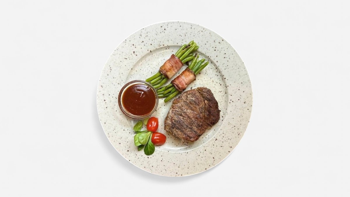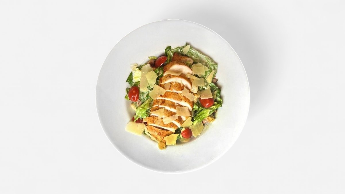 (grilovaná slanina, kuřecí maso, římský salát, ančovičkový dresing, česnekové krutóny, hoblinky parmazánu)