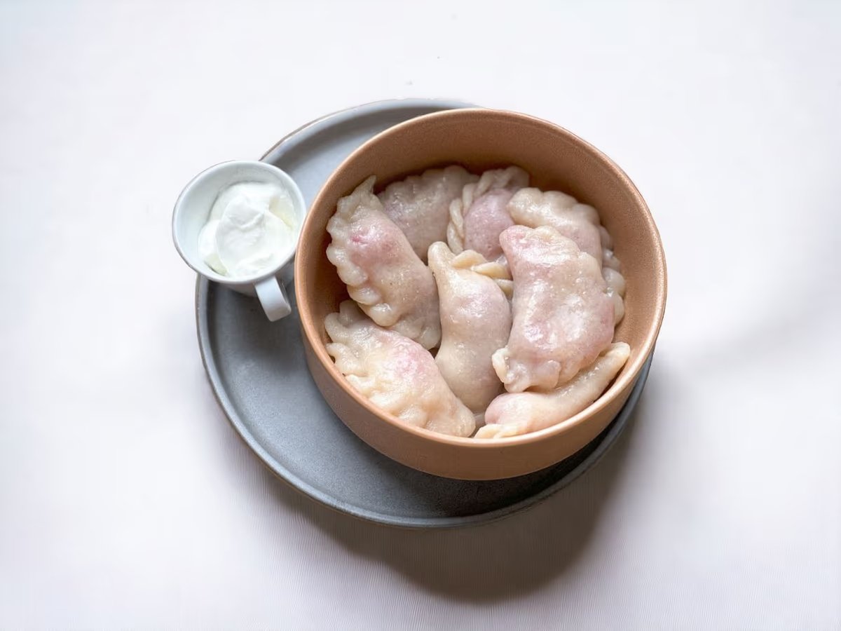 Vareniky s bramborovou náplní a cibuli + zakysana smetana