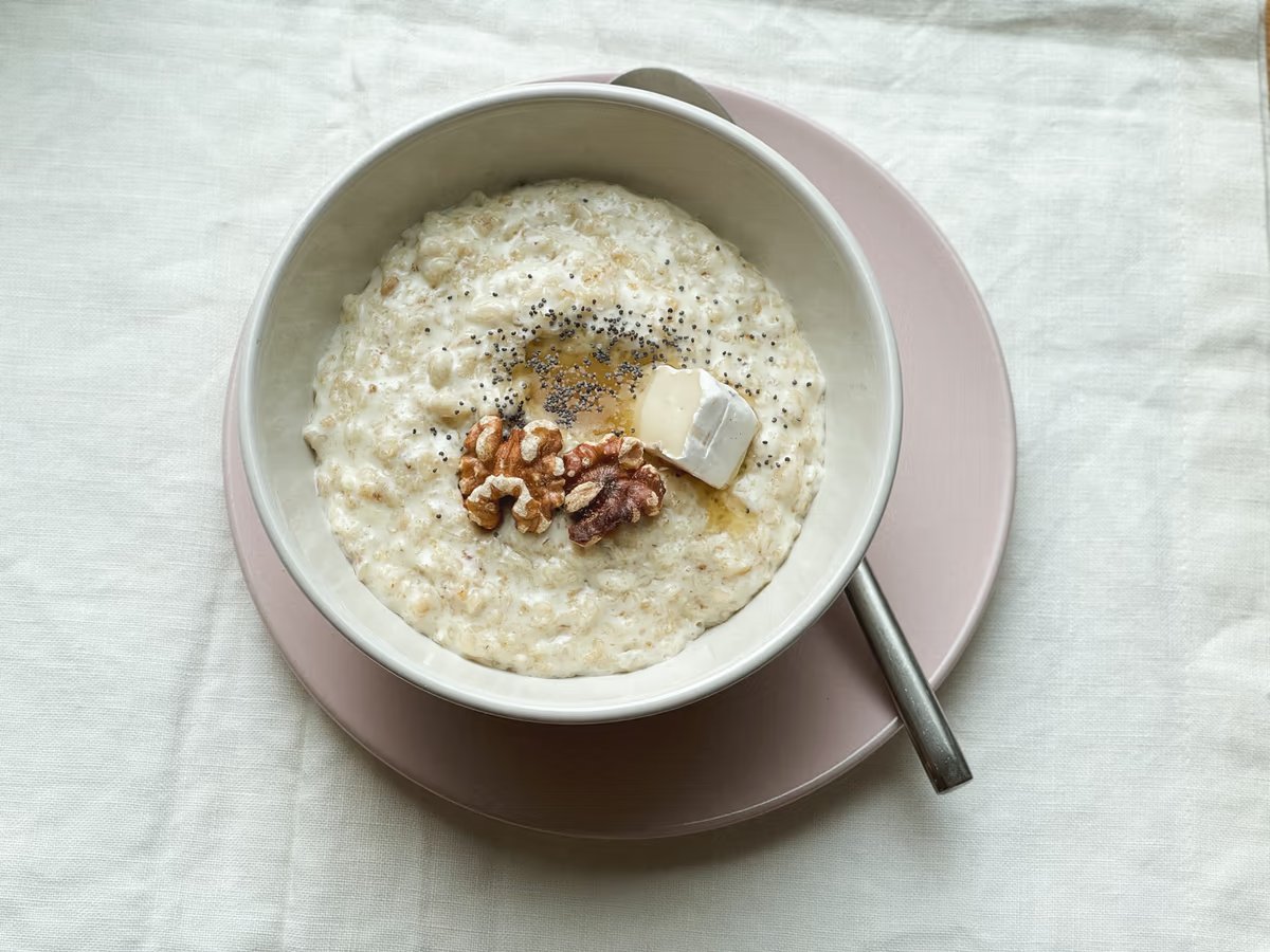 "Neobvyklá kombinace ovesné kaši a smetanového sýra hermelín vytváří neuvěřitelně jemnou snídaňovou kaši. Jakmile tuto kombinaci vyzkoušíte, ke klasickým kaším se už nikdy nevrátíte. Složeni : ovesne vločky, smetana 33%, med, vlašsky ořechy, camembert."