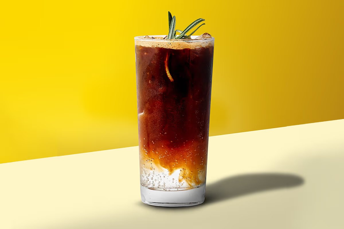 Džus s kávou. Nápoj však zřejmě vychází z espressa ochuceného pomarančem a pár kapkami citrusové šťávy