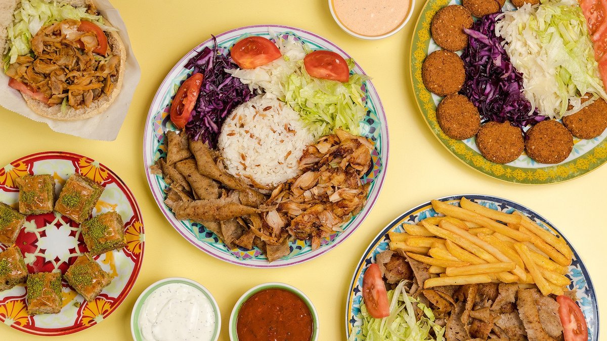 naše vynikající rýže na turecký způsob se zeleninou, míchané maso (kuřecí/hovězí), čerstvá zelenina, naše originální omáčka.