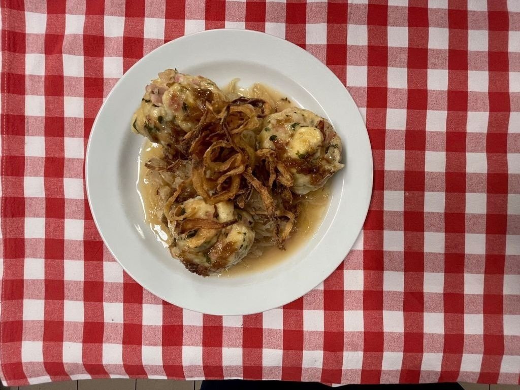 7. 150g. Masové vepřenky, hořčice, brambory vařené