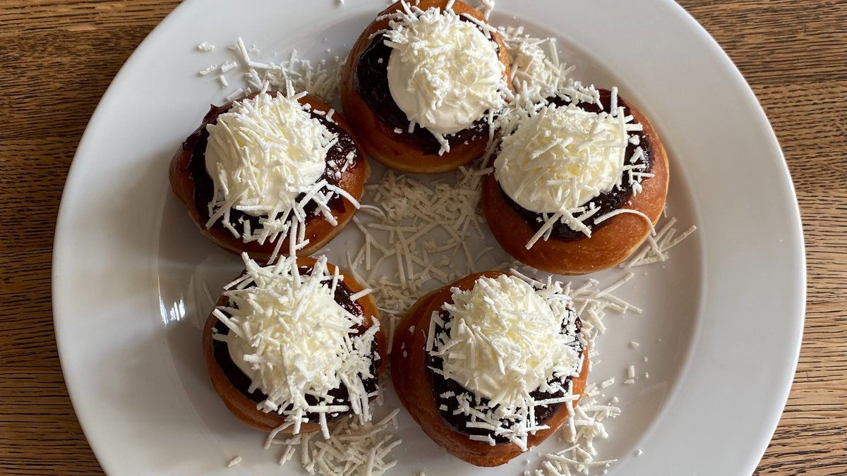 Vdolky s povidly, tvarohem a zakysanou smetanou.