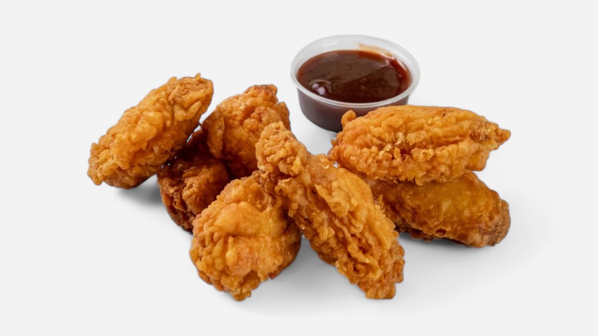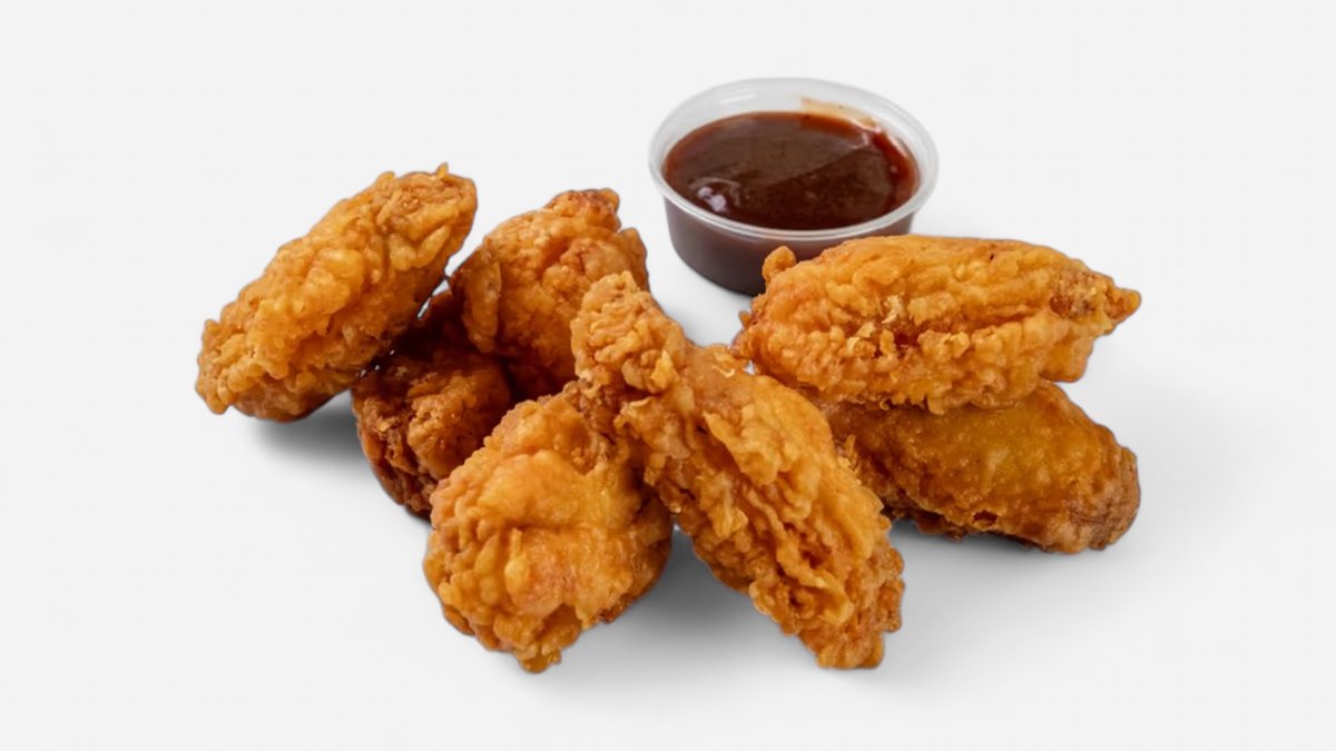 6 křídel z farmářských kuřat v lehce pikantním křupavém těstě 2x omáčka