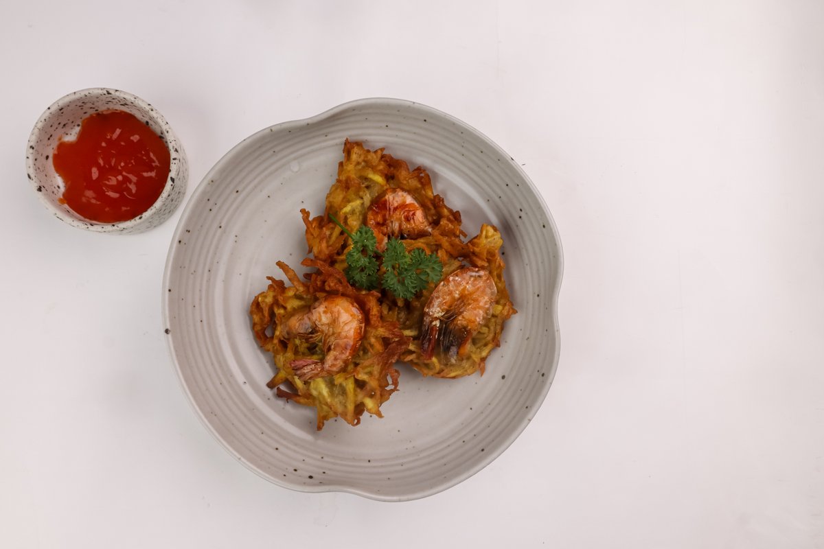 3ks, Křupavé smažené placičky z batátů a krevet, podávané se sladkokyselou omáčkou 1,2,4