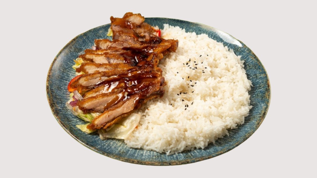 ručně obalované kuřecí kousky, jemně pikantní japonská BBQ omáčka Yakiniku, čerstvý salát, příloha