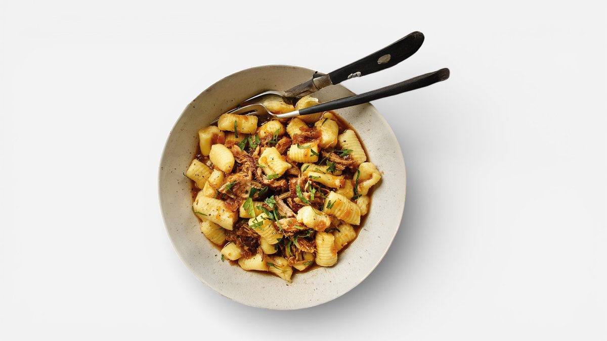 🔝😚 Gnocchi s trhaným kuřecím prsem s BBQ omáčkou, parmazán, rukola