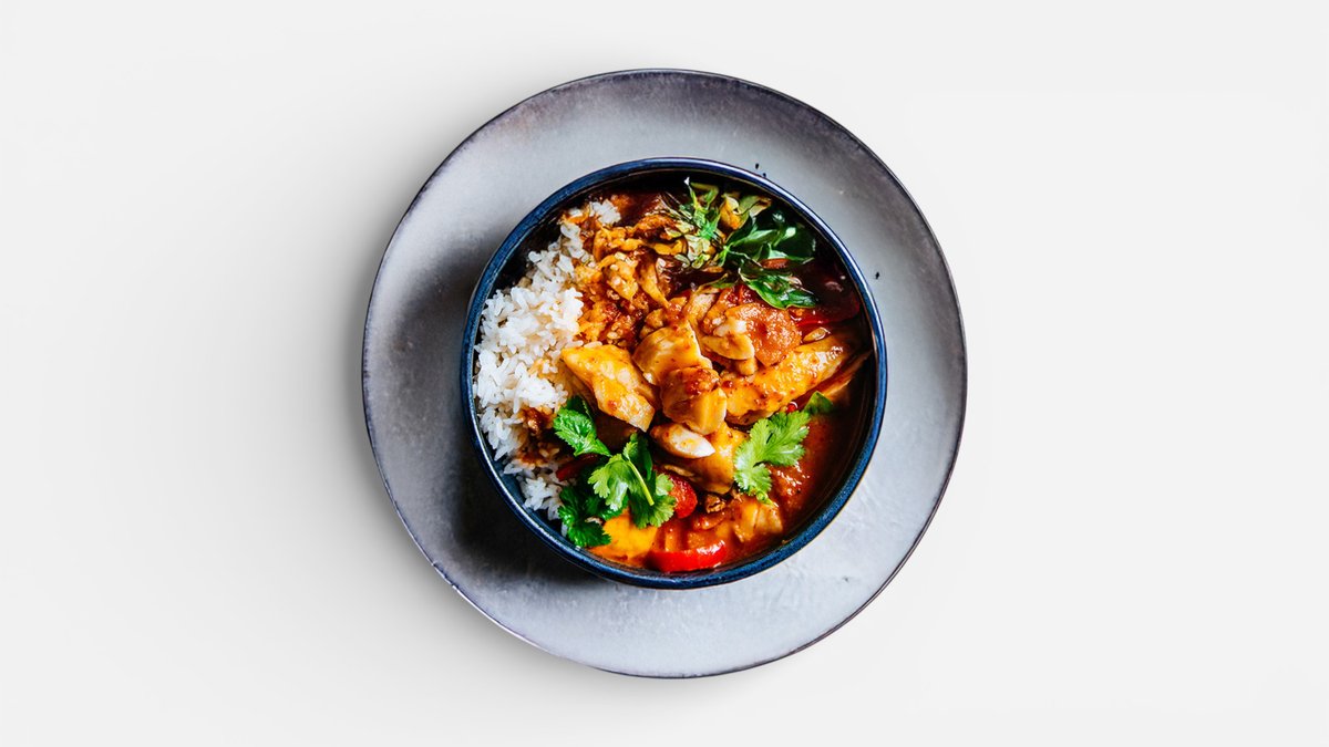 🔝💥💕 Thajské kari s kuřecími prsy a zeleninou, jasmínová rýže