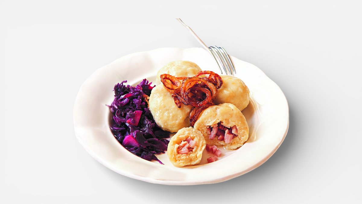 💘😎🤗 Plněné bramborové knedlíky, červené zelí, smažená cibulka a špek