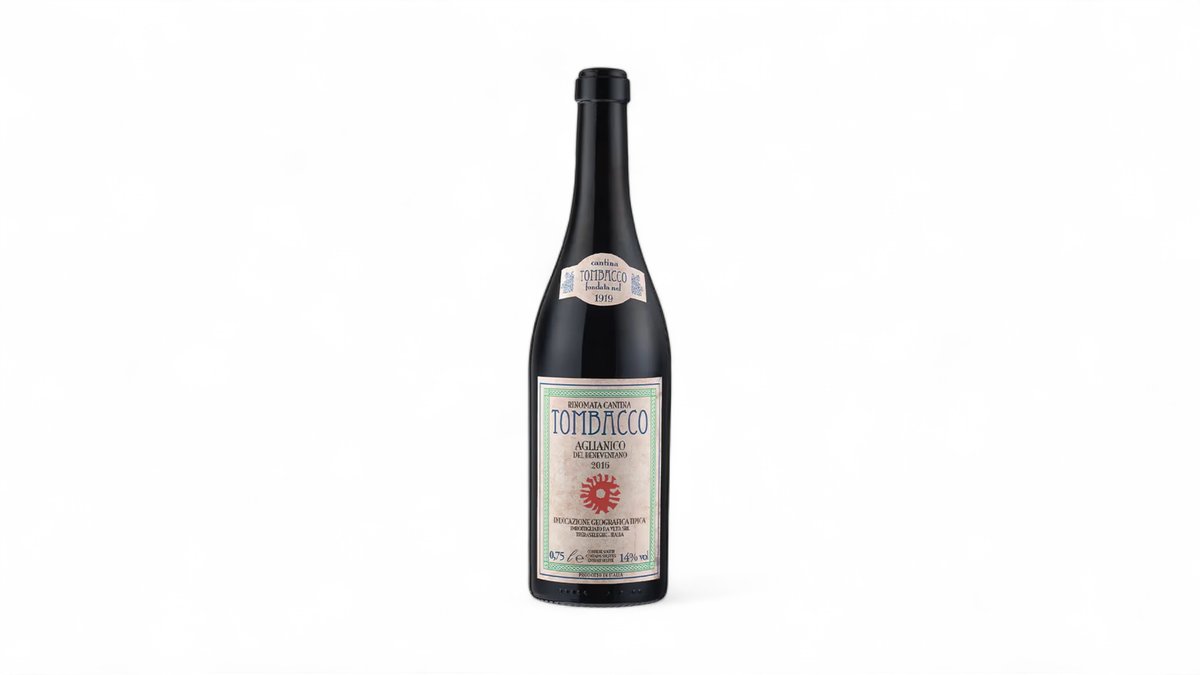 Vinicola Tombacco zpracovává túto odrůdu, jednu z nejstarších odrůd Itálie tak, že ji nechává zrát v pětisetlitrových dřevěných sudech a nerezových tancích stejného objemu. Aglianico má tmavě červenou barvu s purpurovými odstíny, plnou a dlouhotrvající chuť s nuancemi švestek, třešní a koření.