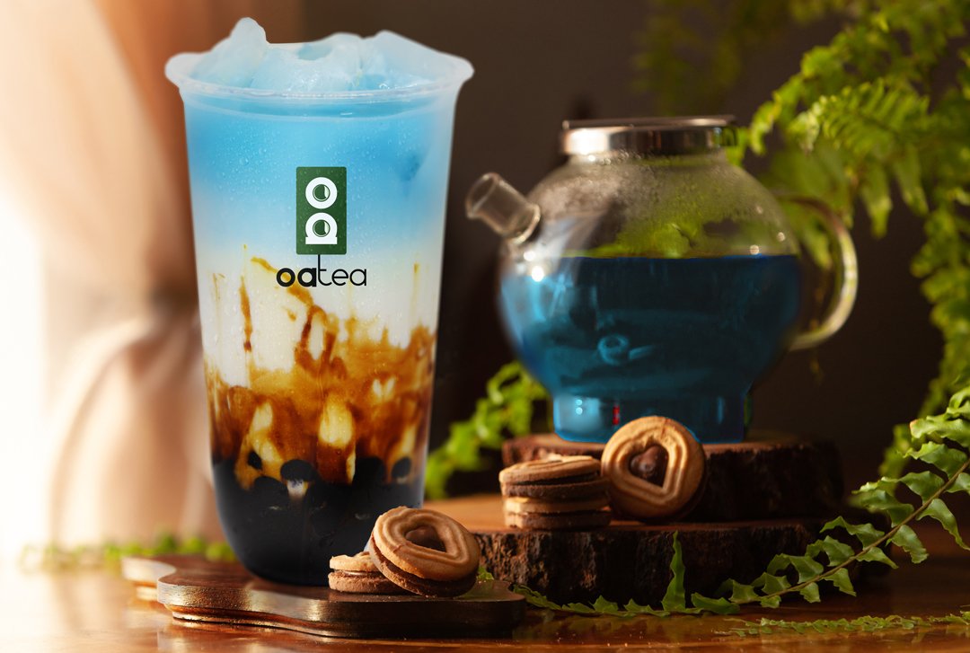 TAPIOKA v ceně! Upozorňujeme, že vlivem přepravy (nebo pokud je drink bez ledu), se Modrý čaj může smíchat s mlékem a nebude jako na obrázku!