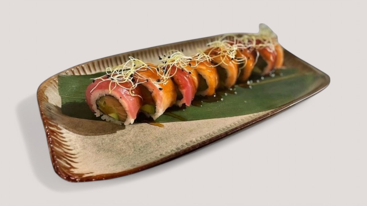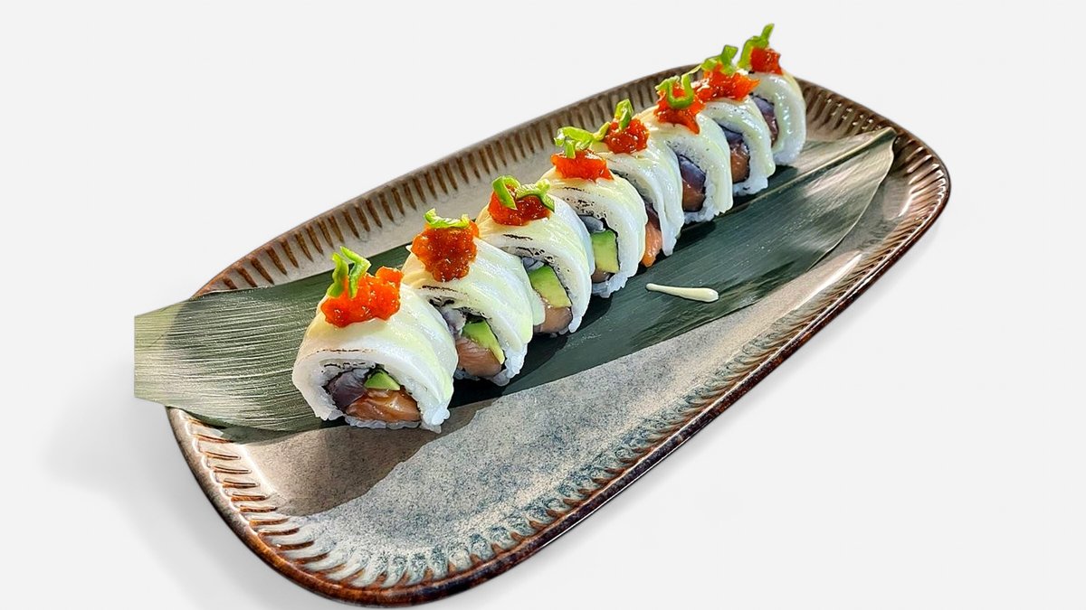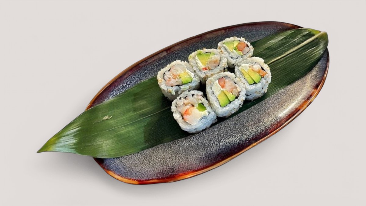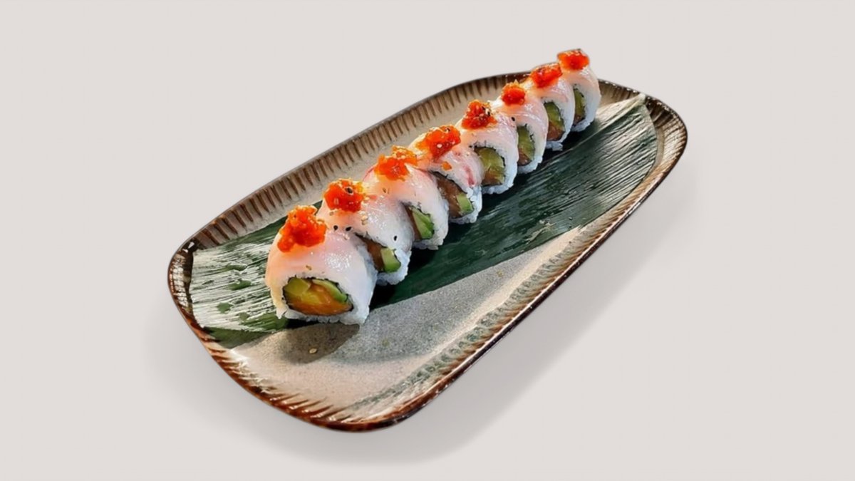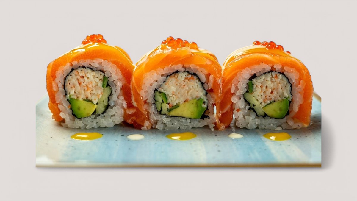In: salmon, avocado, Philadelphia cheese•Out: red tobiko