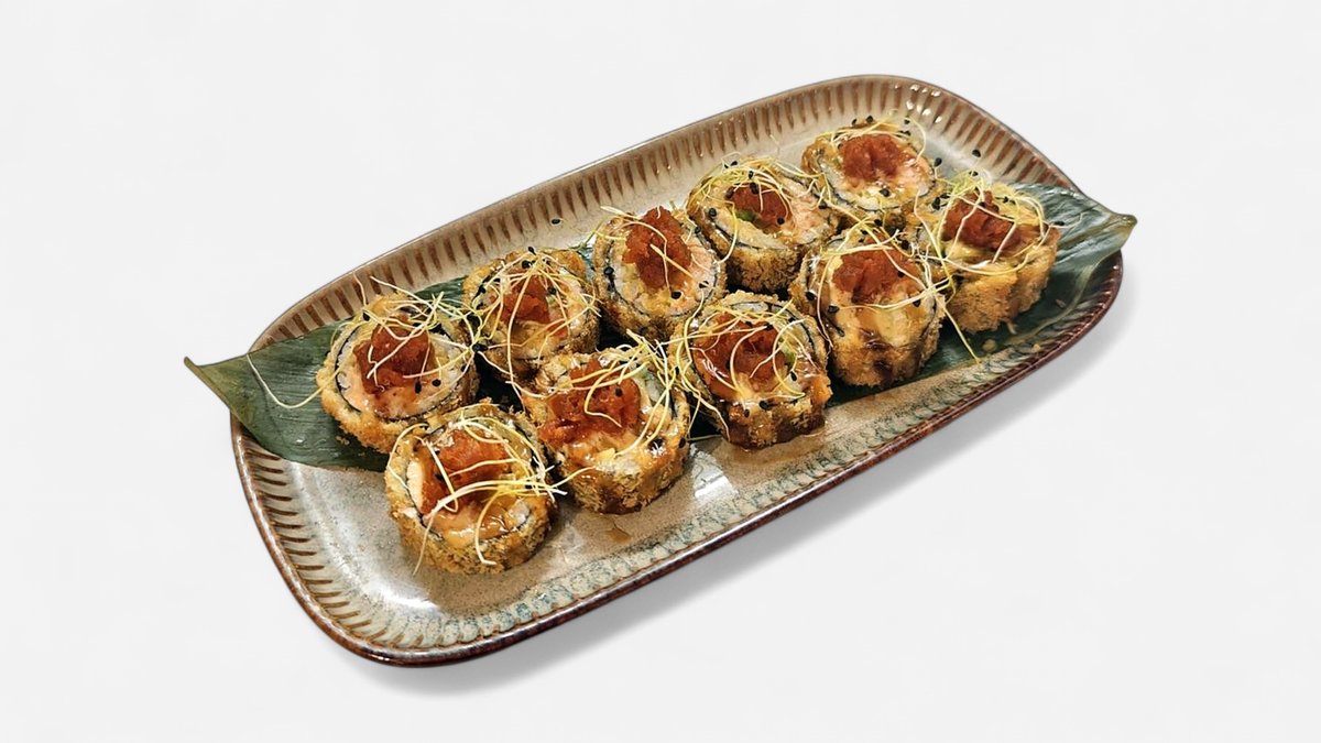 WELDONE Tempura Crunch Roll 10pcs - crab cream, cucumber, avocado, creamy prawn, Passion fruit and Creamy sauce, sesame