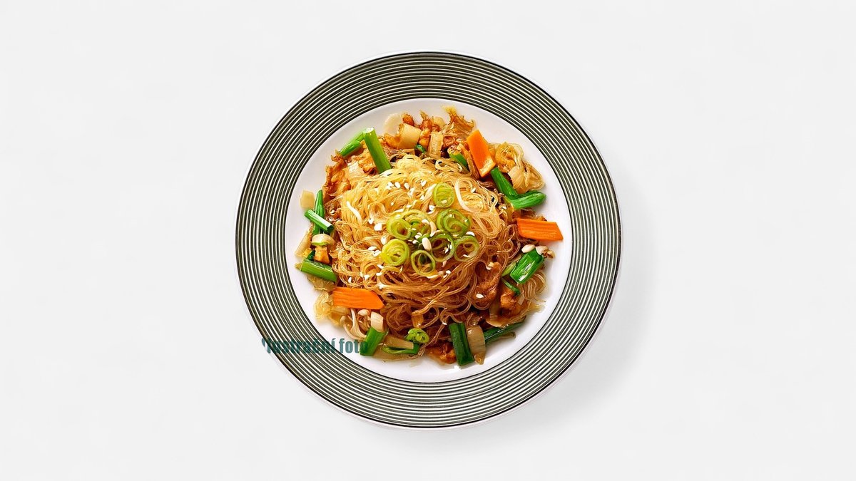 s vepřovým masem a čínským zelím, rýžové nudličky, se sladko-pálivou omáčkou