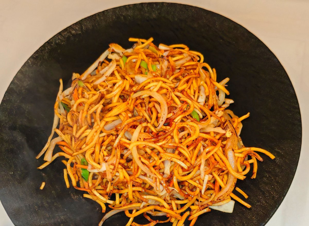 3 druhy masa: kuřecí vepřové, hovězí, slanopálivá příchuť, čínské zelí, cibule, paprika, bambusové výhonky, černé houby