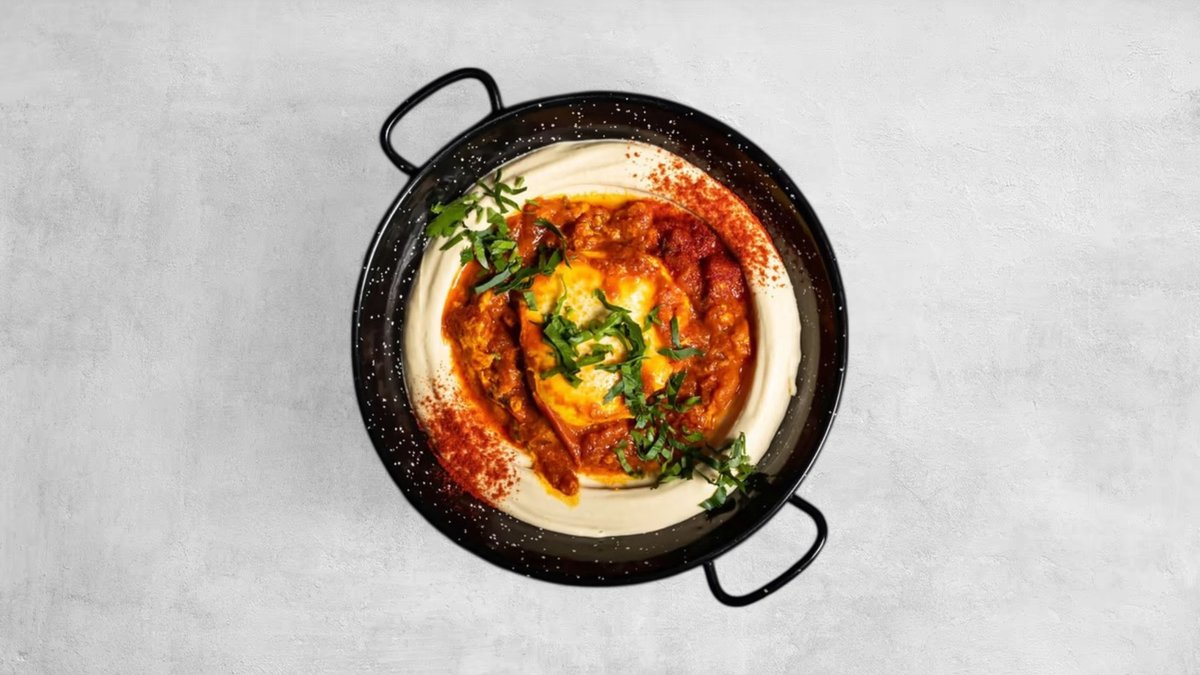 Shakshuka, vařené vejce, tahini, koření + domácí pita chléb (1,3,11)