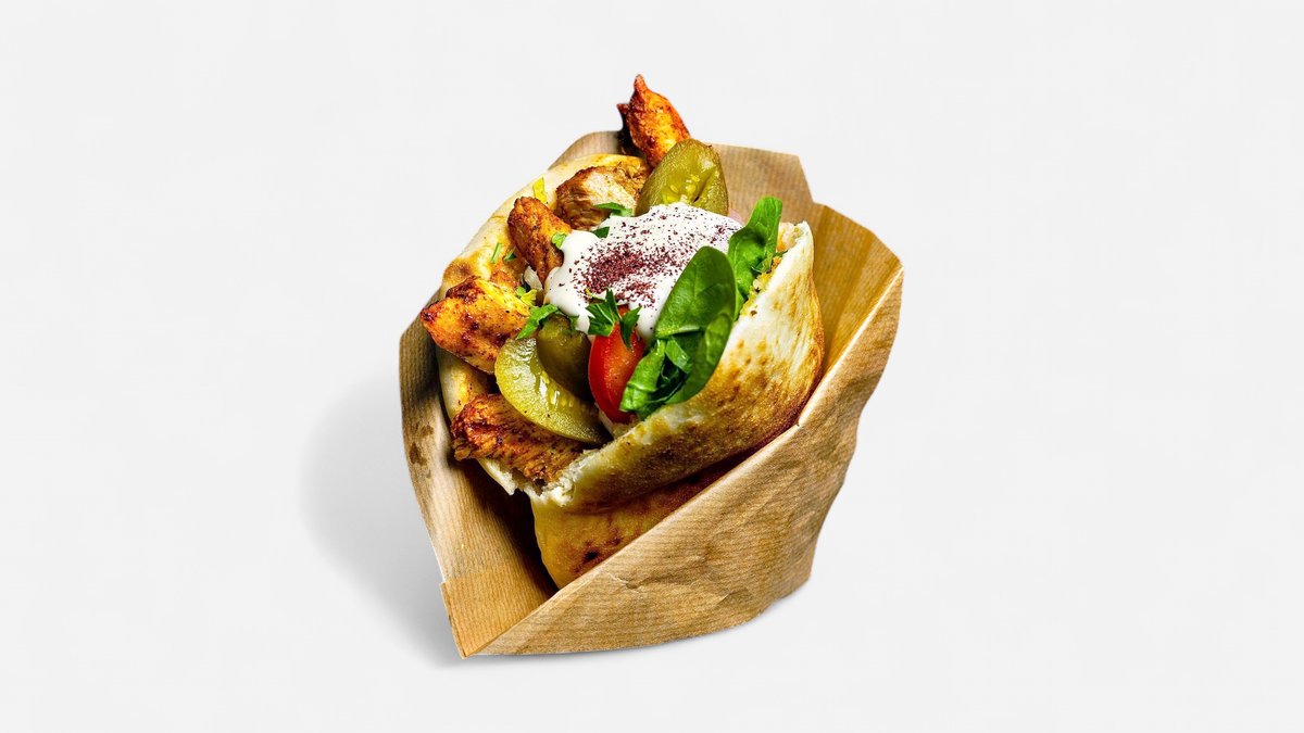 Kuřecí shawarma, tahini, koření + domácí pita chléb (1,8,11)