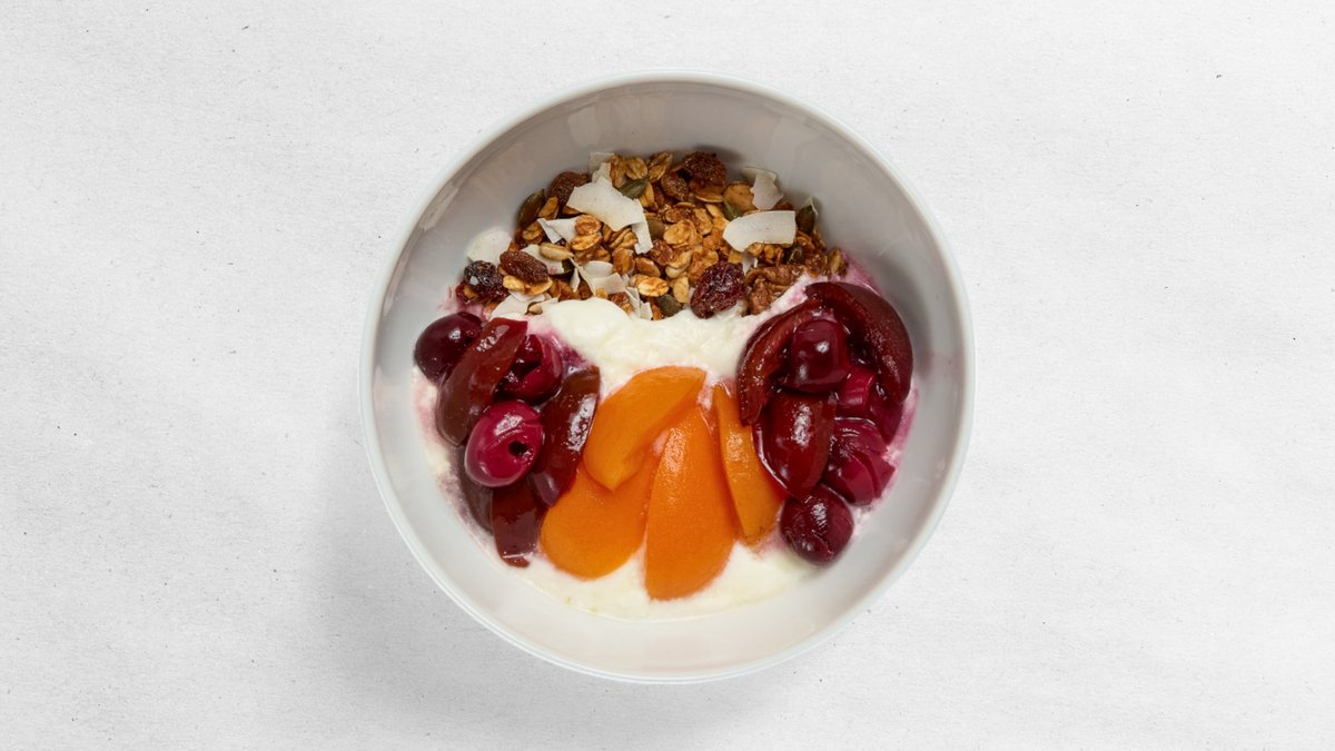 vícezrnný chléb, avokádo s chilli křupavým olejem, míchaná vejce s pažitkou, smetanový sýr