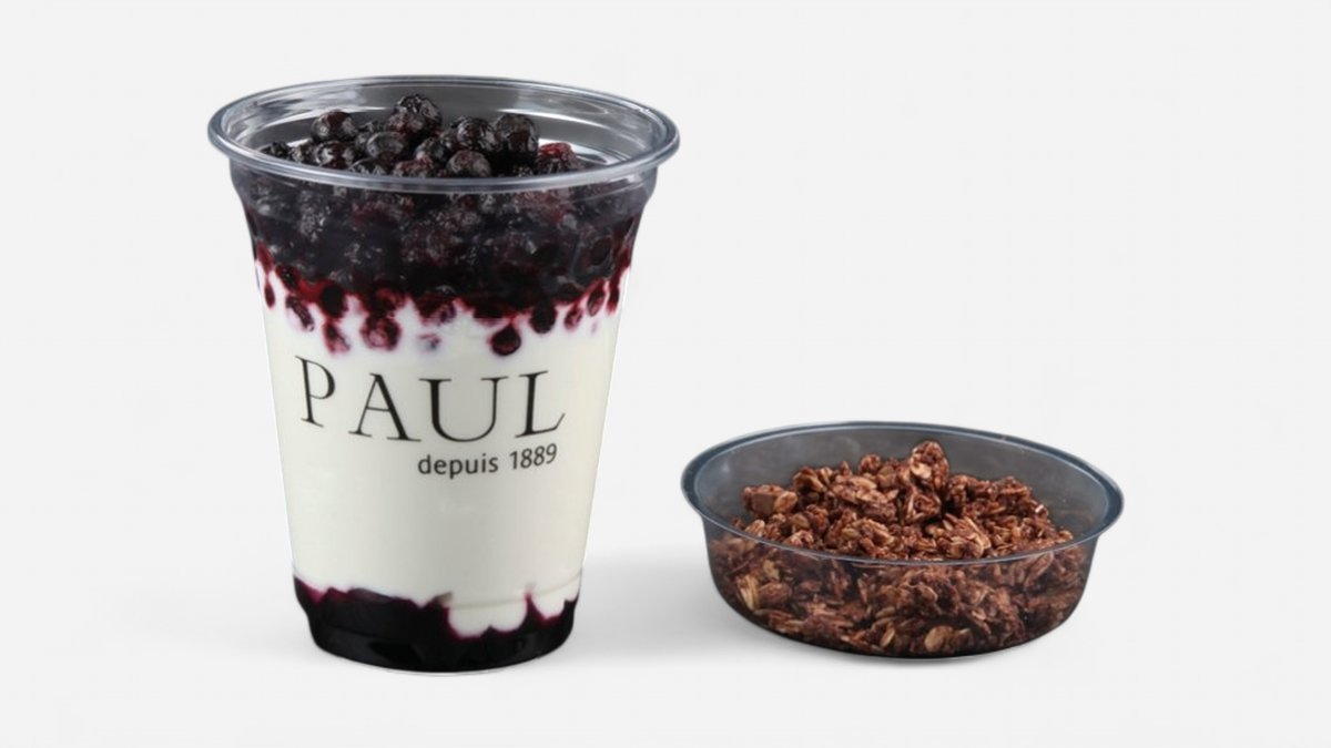 Začněte ideálně svůj den s jogurtem od PAULa! Borůvkový jogurt pro Vás připravujeme z bílého jogurtu, pyré a borůvek.
