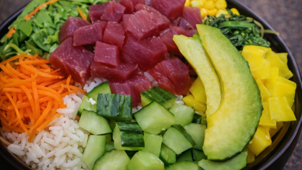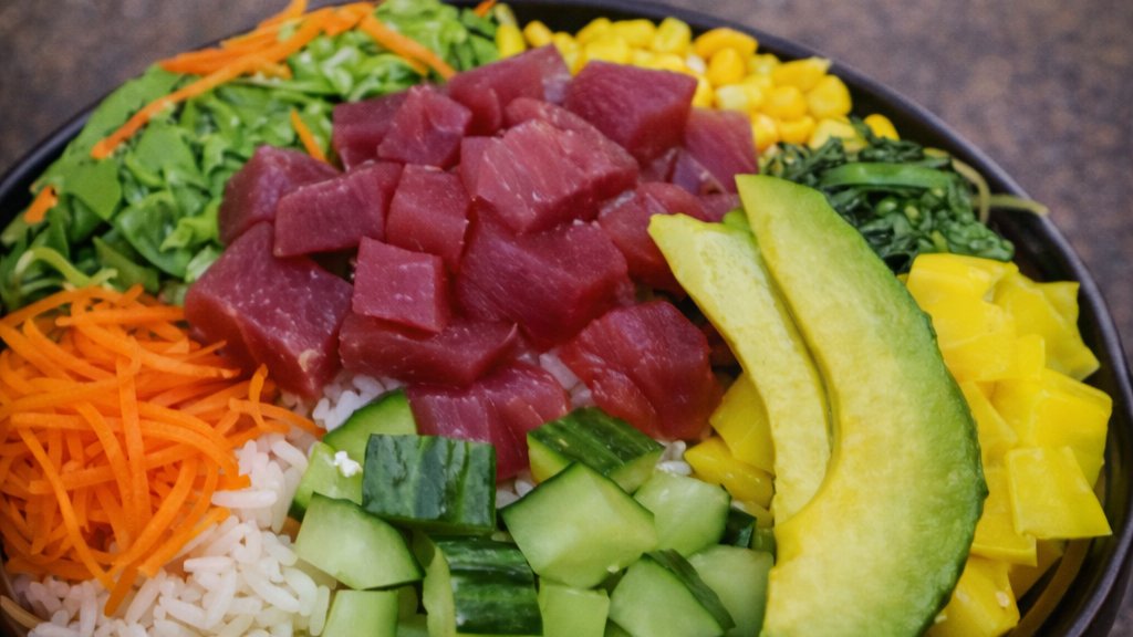 Uvnitř : Losos , Mango, Avokado Venku : Mango, omačka