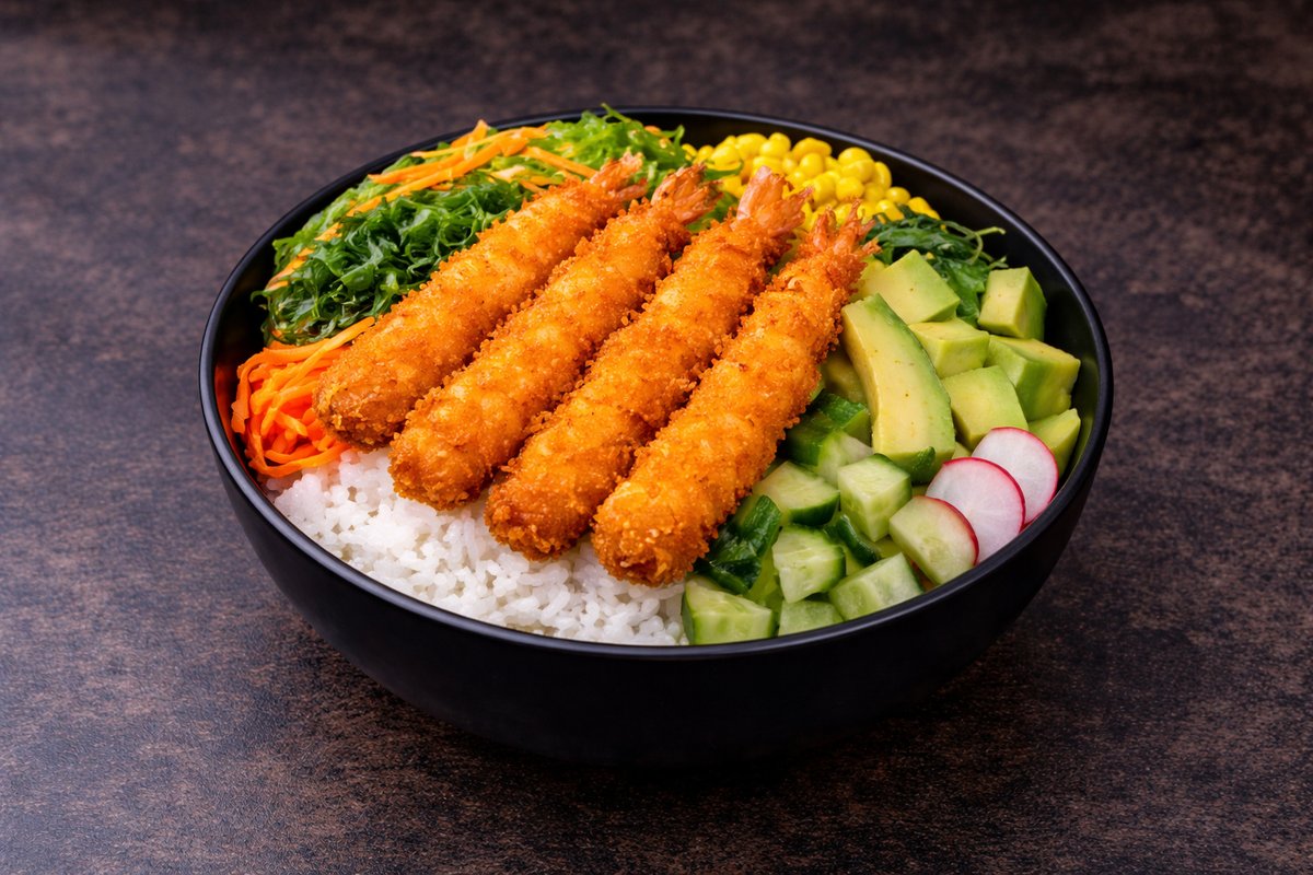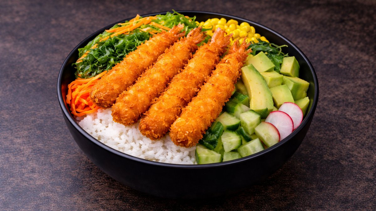 Uvnitř : Krevety ,Okurka, Cibulka, Avokado, Philadelphia Syr Venku :Tempura Sypání, omačka