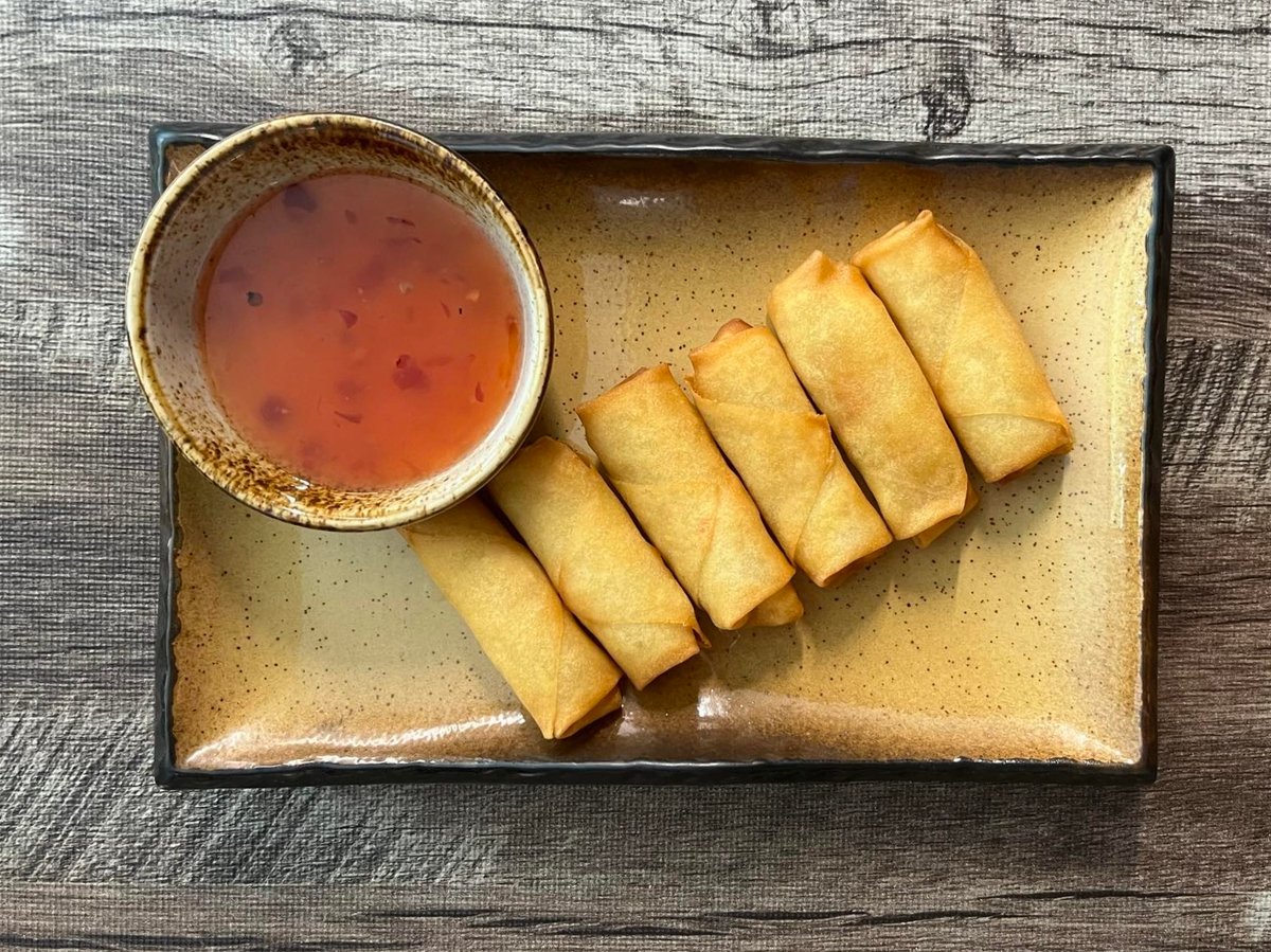 6ks vegetariánských závitků podávaných se sladko-chilli omáčkou