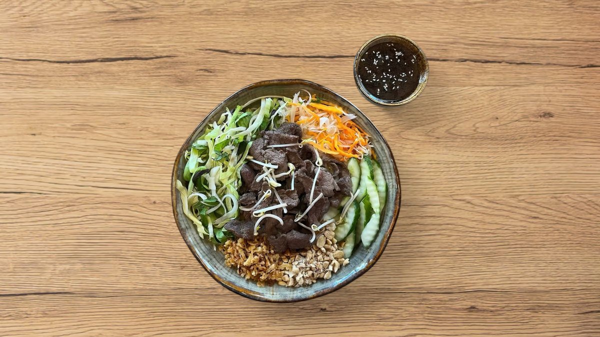 polévka s restovaným hovězím masem a rýžovými nudlemi